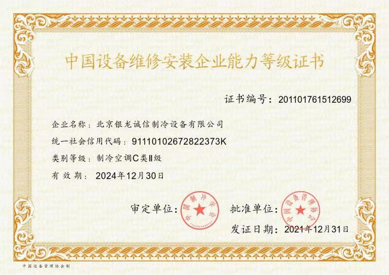 2007年:獲準成為北京市制冷行業(yè)技術(shù)學會理事單位; 2009年:獲得北京市大興區(qū)百強企業(yè)認證; 2009年:獲得國家高新技術(shù)企業(yè)認證; 2011年:獲北京市安全生產(chǎn)先進企業(yè)稱號,節(jié)能環(huán)保先進單位; 2012年:通過了國家高新技術(shù)企業(yè)復審; 2013年:公司董事長獲"2013北京先進企業(yè)家"榮譽稱號; 2014年:獲2014年度中國冷庫工程安裝設計造價行業(yè)十大品牌;